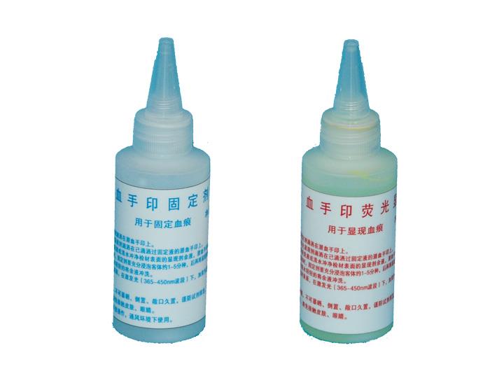 价格:700.00元/套用于显现血手印的荧光显现剂,产品由血手印荧光显现剂(300ml)和血手印固定剂(400ml)两部分组成。先用血手印固定剂喷洒检材,再用血手印荧光显现剂喷洒,用水冲洗,晾干。用365-450nm光谱照射检材,佩戴黄色眼镜观察潜血手印的荧光。不影响后续的DNA检验。